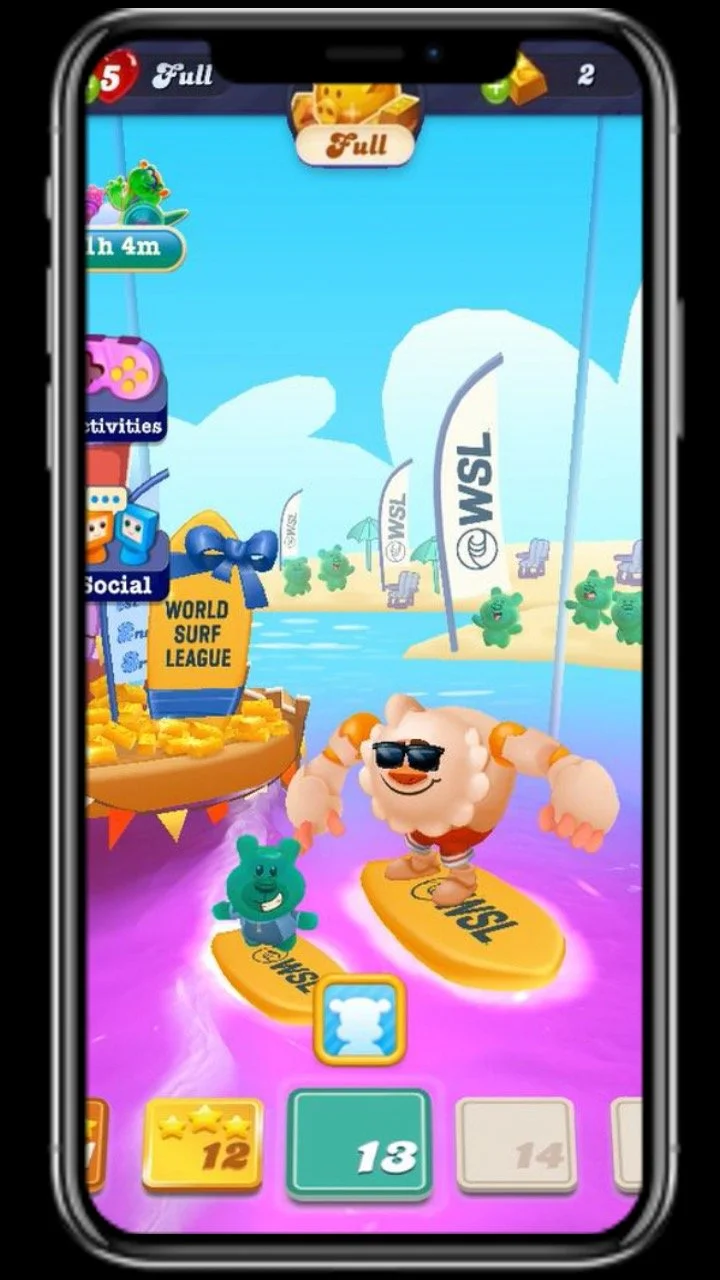 To build new audiences and promote the WSL Finals, I helped create a first-of-its-kind sports partnership with Candy Crush Soda. My pitch resulted in a “Surf Season” in-game tournament experience, a social sweepstakes to win a custom signed surfboard, and on-site activations at the WSL Finals event. In all, our Jelly Slater-led partnership created 2.3 billion impressions in our most crucial time of the season.